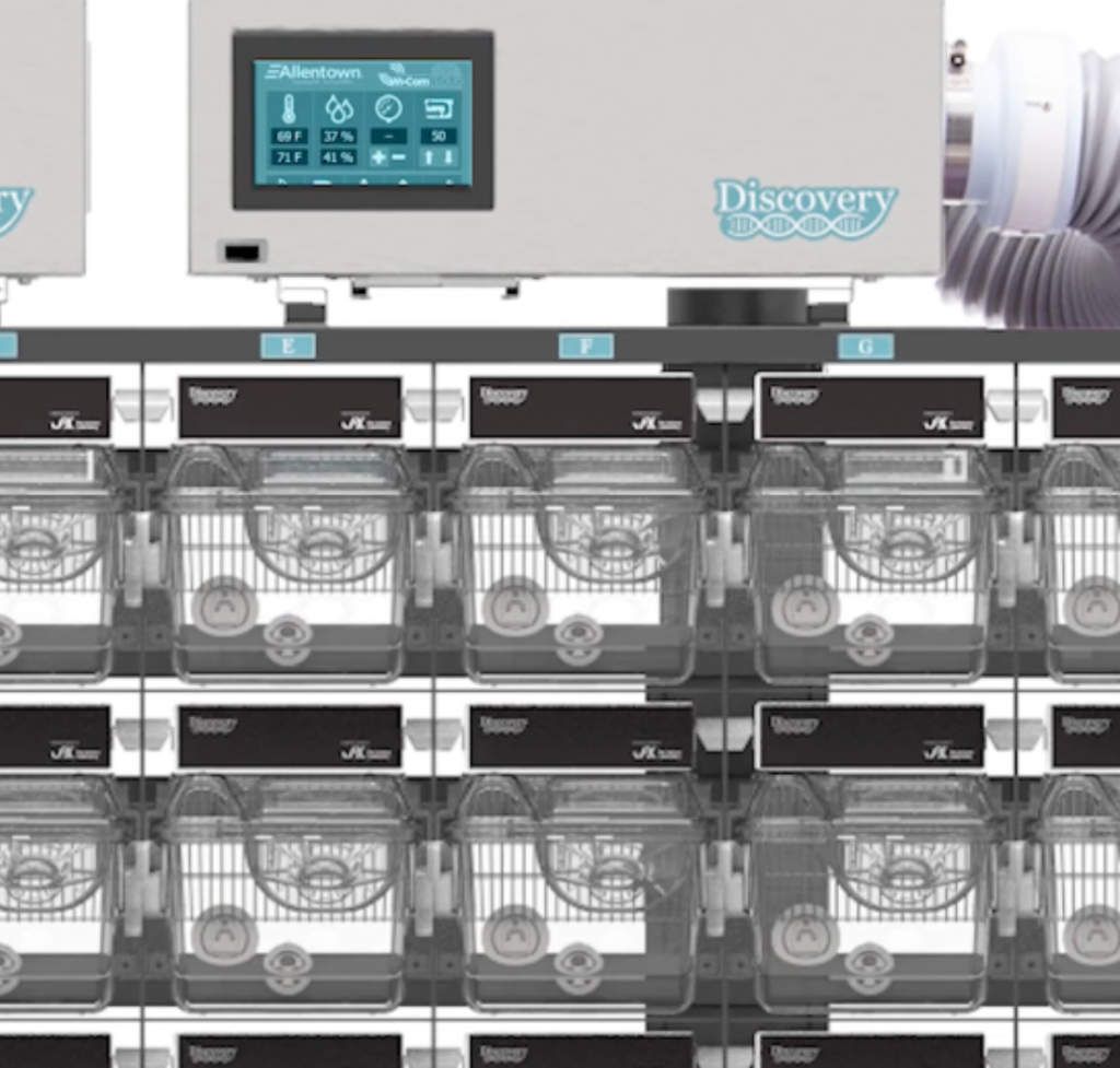 Envision™, desarrollada por JAX, es una solución validada basada en la nube que utiliza visión artificial, un campo especializado de la IA, para monitorizar el vivario las 24 horas del día, los 7 días de la semana, y así identificar comportamientos y medidas fisiológicas relevantes, así como también las condiciones de los niveles de alimento y agua, que afectan al bienestar de los animales. JAX se asoció recientemente con Allentown, proveedor de soluciones para vivarios, para lanzar una solución totalmente integrada de monitorización de jaulas para ratones basada en IA. La combinación de Envision con el nuevo bastidor de vena cava inferior Discovery™ de Allentown permite a los científicos recopilar mejor los datos de comportamiento y fisiológicos necesarios para avanzar en el desarrollo de fármacos.