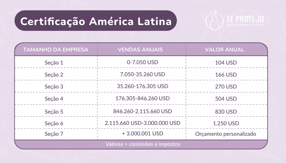 O valor a pagar dependerá da seção das vendas anuais da empresa a ser certificada.