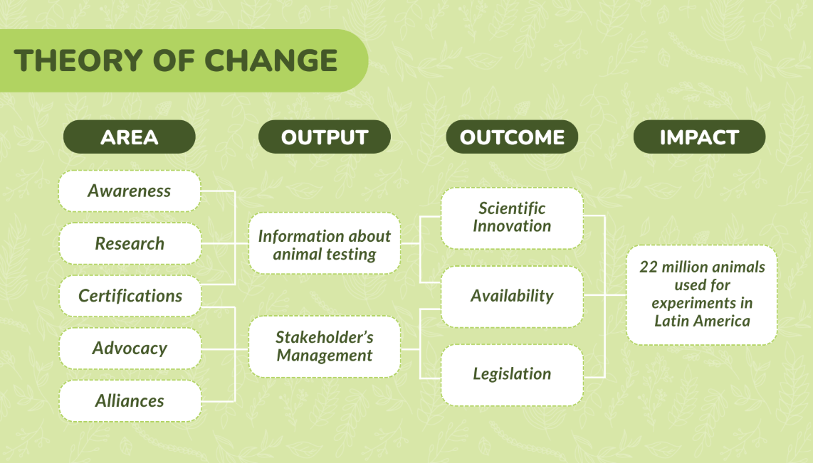 These two outcomes are essential pillars in our Theory of Change. They help shift narratives, transform policies, and build the momentum needed to eliminate animal testing in Latin America.