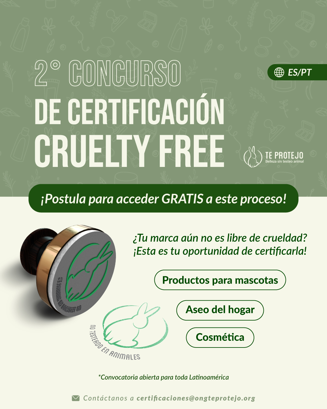 En este contexto, con el objetivo de aumentar la disponibilidad de productos cruelty free en el mercado de América Latina y reforzar el compromiso por una mercado más compasivo y respetuoso con los animales, este año se llevará a cabo la segunda edición del concurso de certificación cruelty free gratuita de Te Protejo.