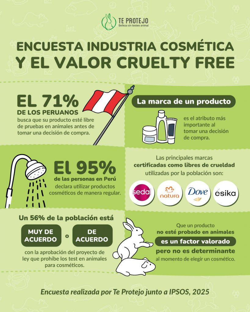 Una encuesta realizada por Te Protejo junto a IPSOS evaluó la percepción de la industria cosmética por parte de los peruanos y su perspectiva sobre el fin de las pruebas en animales para esta industria.
